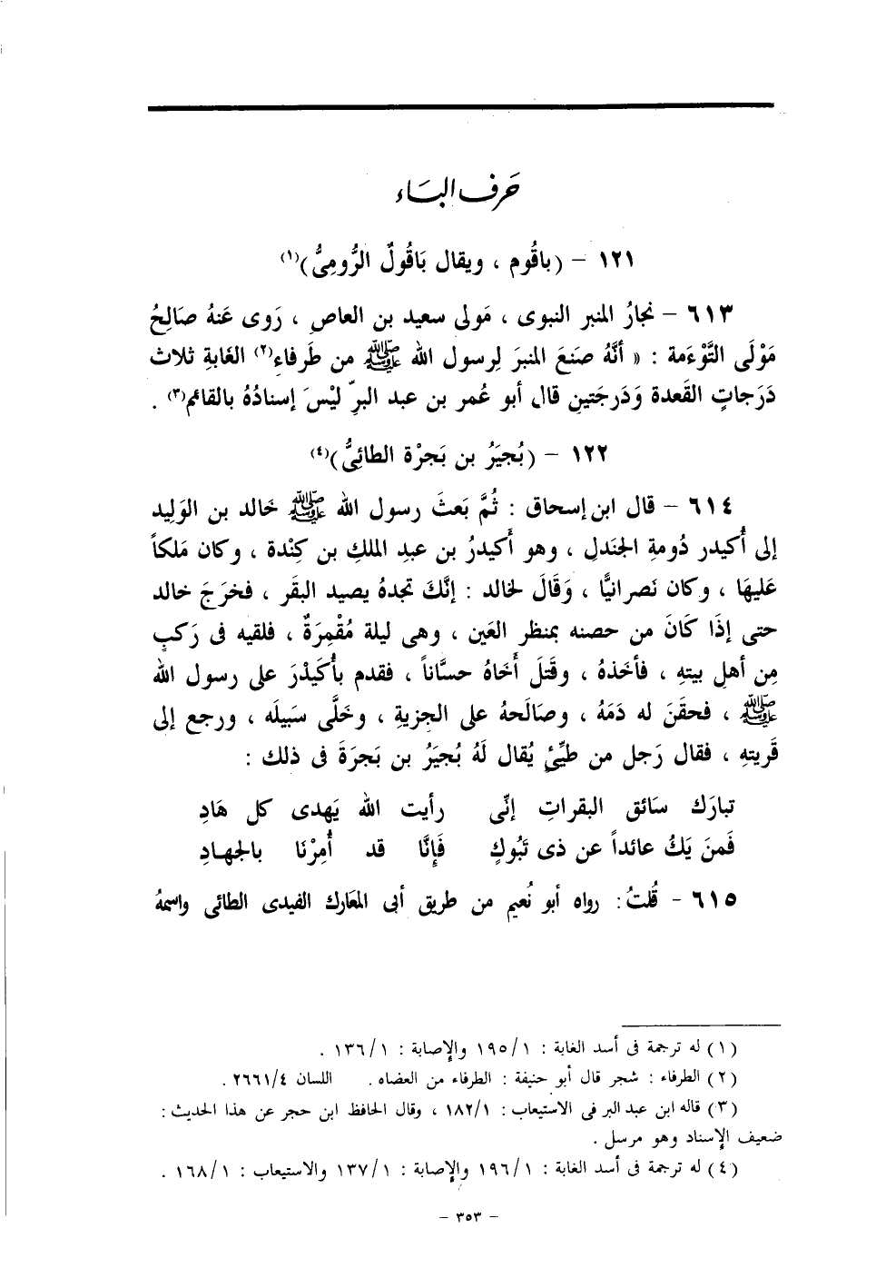 (¬4) له ترجمة في أسد الغابة: 1/196 والإصابة: 1/137 والاستيعاب: 1/168.