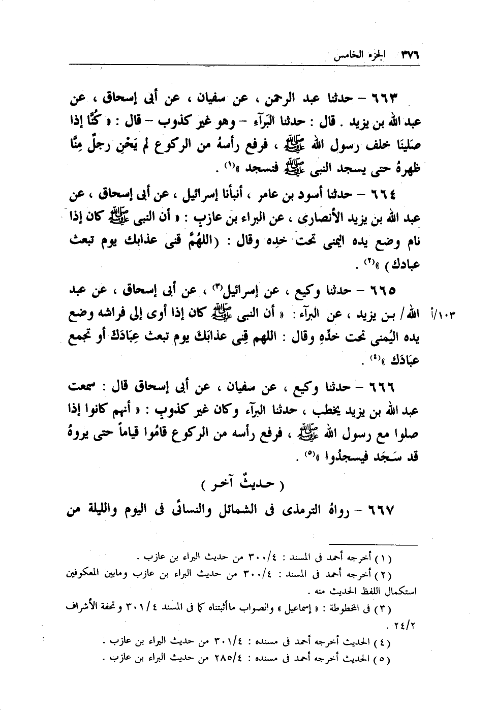 (¬5) الحديث أخرجه أحمد في مسنده: 4/285 من حديث البراء بن عازب.