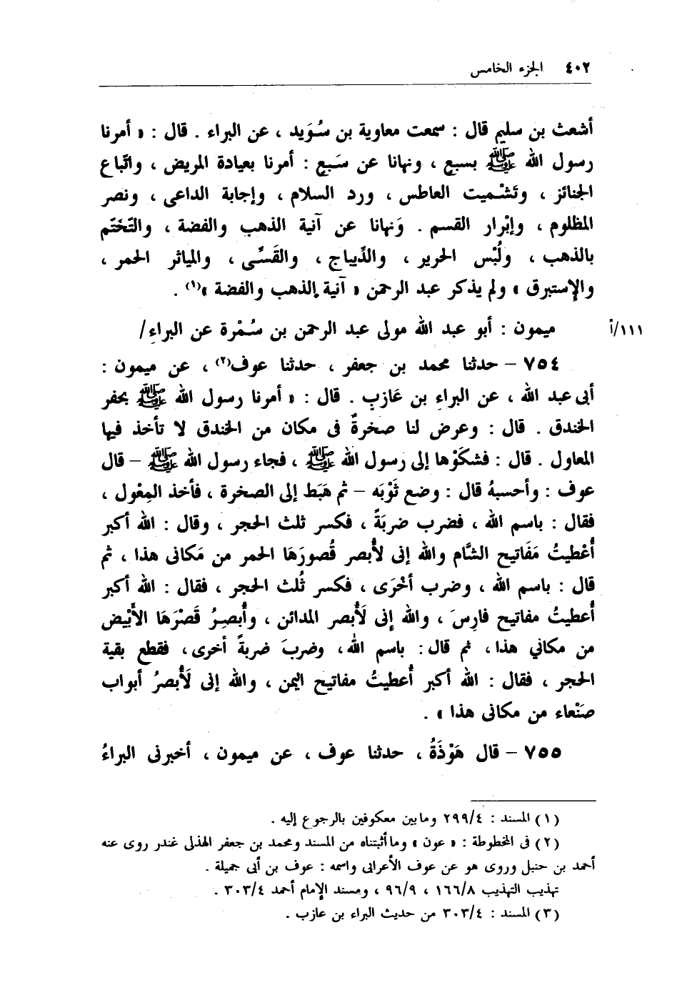 (¬2) المسند: 4/303 من حديث البراء بن عازب.