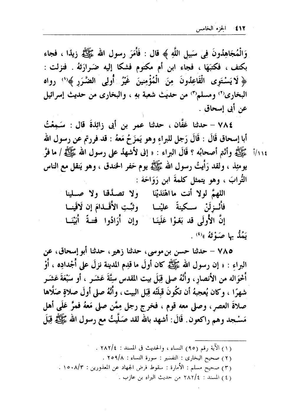 (¬1) الآية رقم (95) النساء، والحديث في المسند: 4/282.