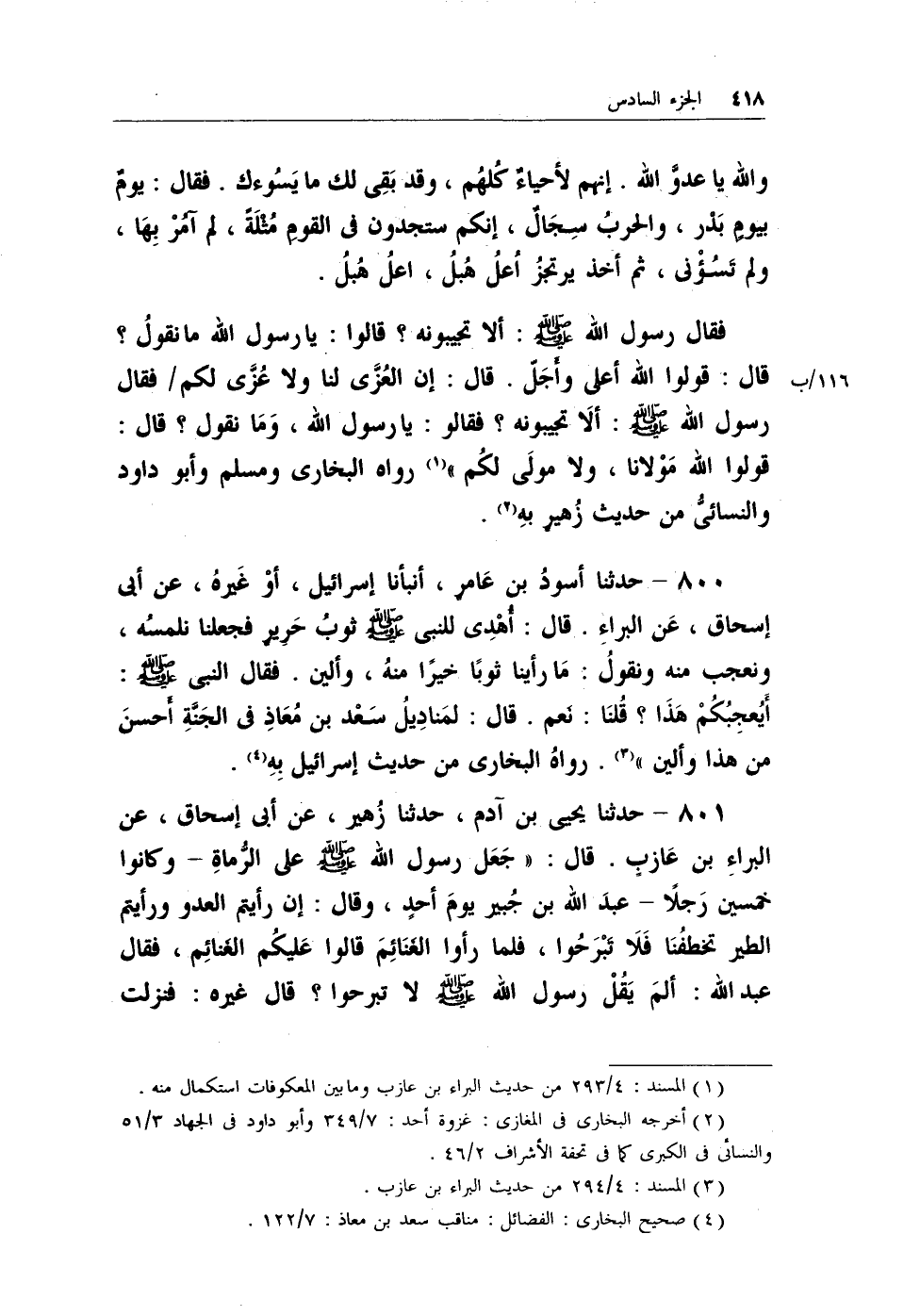 (¬2) أخرجه البخاري في المغازي: غزوة أحد: 7/349 وأبو داود في الجهاد 3/51 والنسائي في الكبرى كما في تحفة الأشراف 2/46.