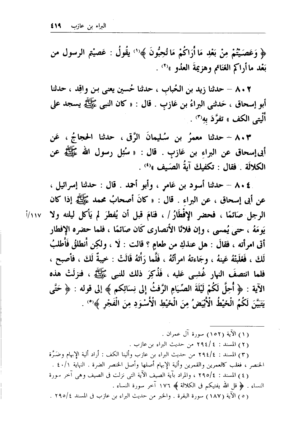 (¬2) المسند: 4/294 من حديث البراء بن عازب.