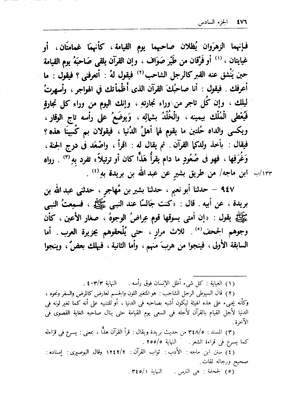 (¬4) سنن ابن ماجه: الأدب: ثواب القرآن: 2/1242 وقال البوصيري: إسناده: صحيح ورجاله ثقات.
