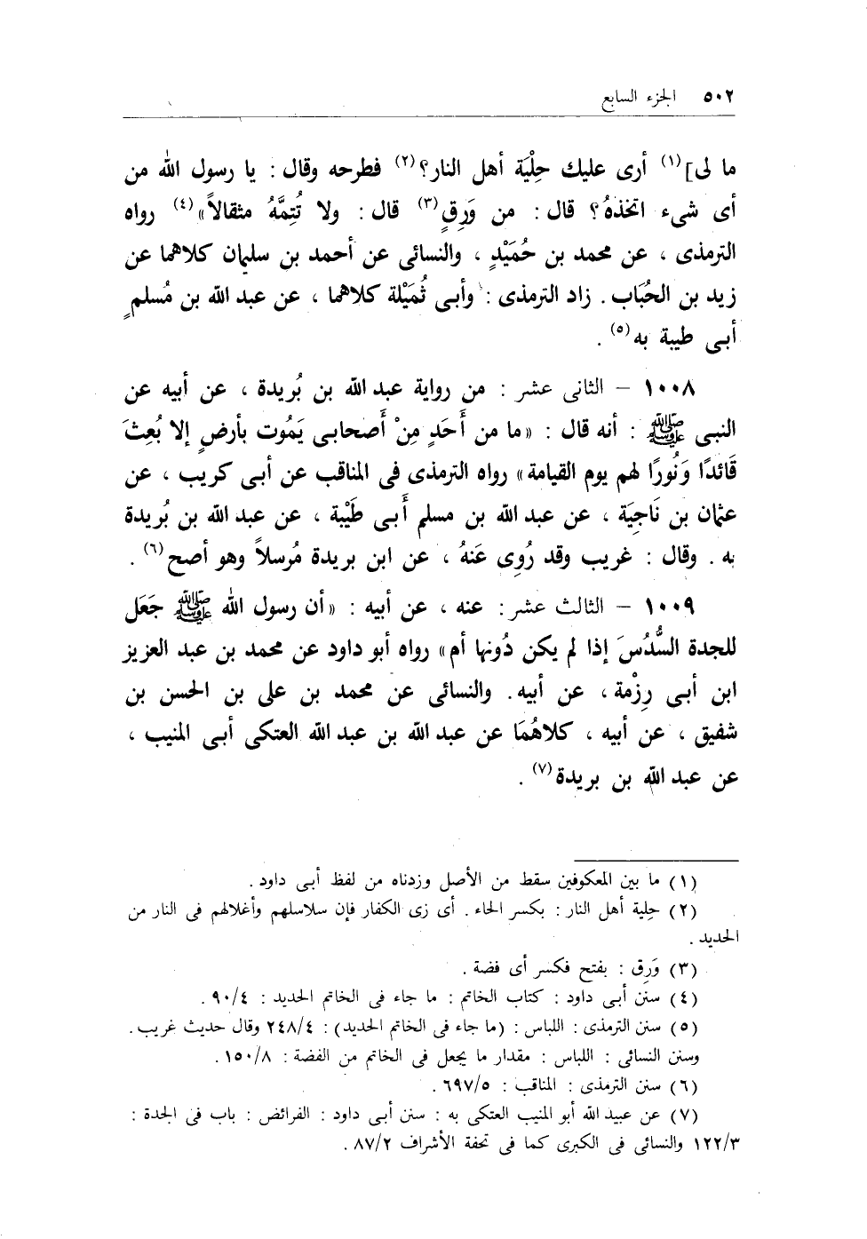 (¬5) سنن الترمذي: اللباس: (ماجاء في الخاتم الحديد) : 4/248 وقال حديث غريب. وسنن النسائي: اللباس: مقدار ما يجعل في الخاتم من الفضة: 8/150.