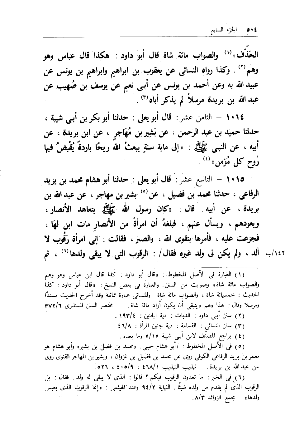 (¬1) العبارة في الأصل المخطوط: (قال أبو داود: كذا قال ابن عباس وهو وهم والصواب مائة شاة) وصوبت من السنن. والعبارة في بعض النسخ: (قال أبو داود: كذا الحديث: خمسمائة شاة، والصواب مائة شاة. وللنسائي عبارة مماثلة وقد أخرج الحديث مسنداً ومرسلاً وقال: هذا وهم ويتبقى أن يكون أراد مائة شاة. مختصر السنن للمنذري 6/372.