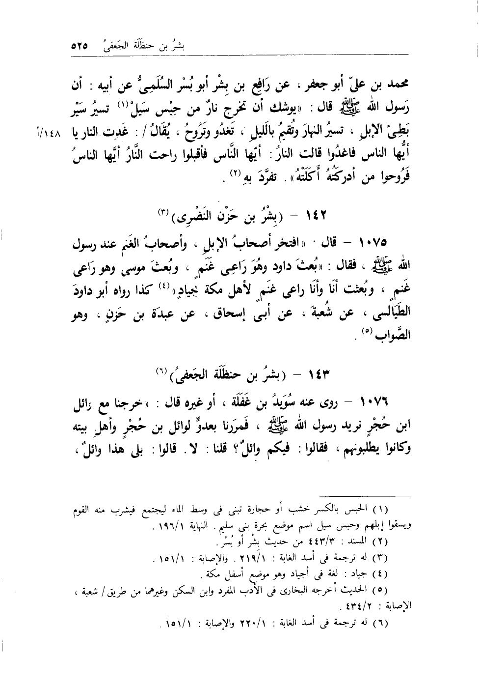(¬1) له ترجمة في أسد الغابة: 1/219. والإصابة: 1/151.