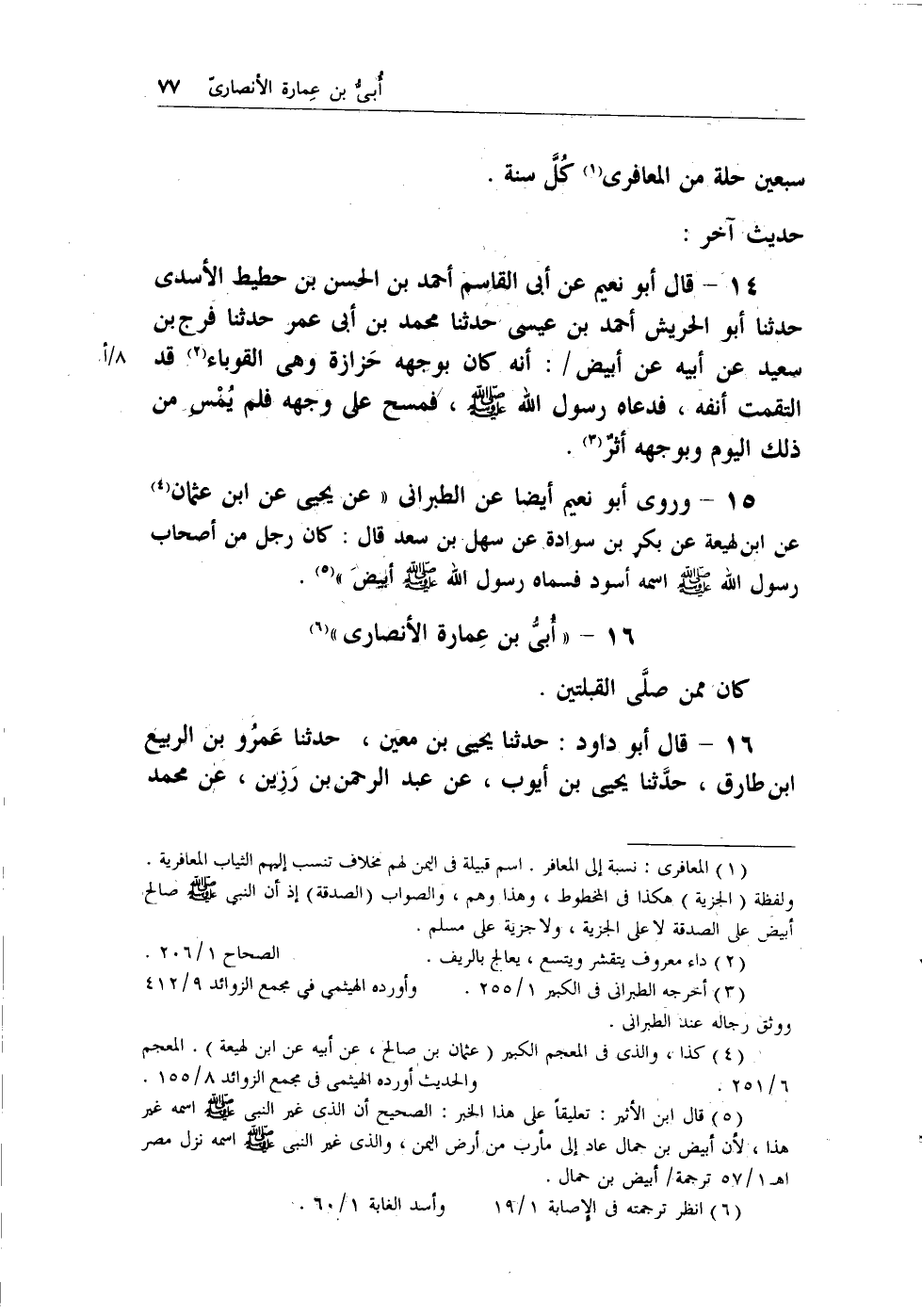 (¬4) قال ابن الأثير: تعليقاً على هذا الخبر: الصحيح أن الذي غير النبي - صلى الله عليه وسلم - اسمه غير هذا، لأن أبيض ابن حمال عاد إلى مأرب من أرض اليمن، والذي غير النبي - صلى الله عليه وسلم - اسمه نزل مصر أهـ 1/57 ترجمة / أبيض بن حمال.