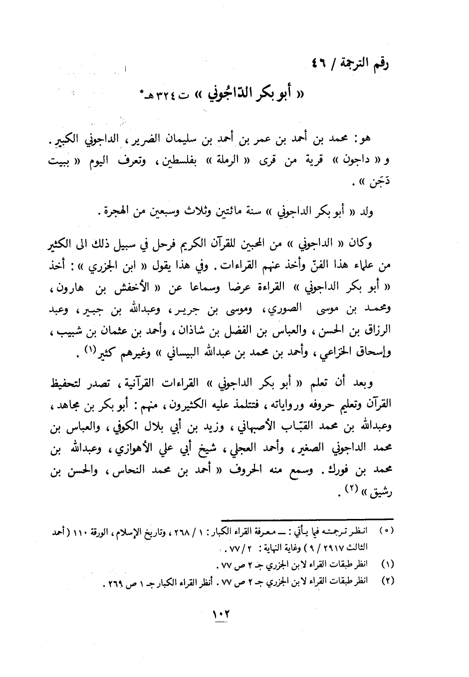 رقم الترجمة/ 46 «أبو بكر الدّاجوني» ت 324 هـ (¬1)
