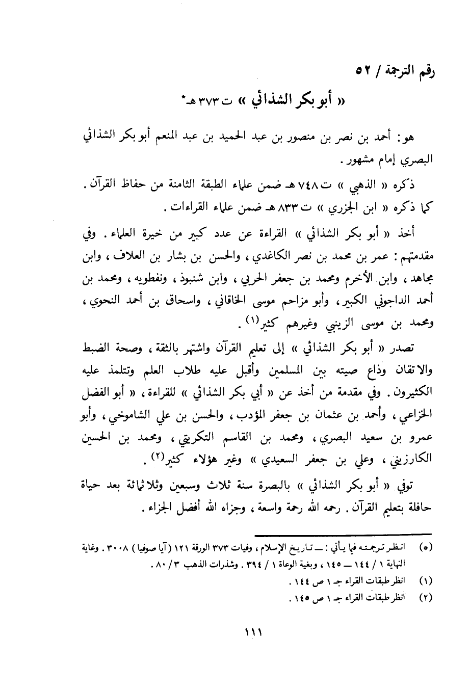 (¬2) انظر طبقات القراء ج 1 ص 144.