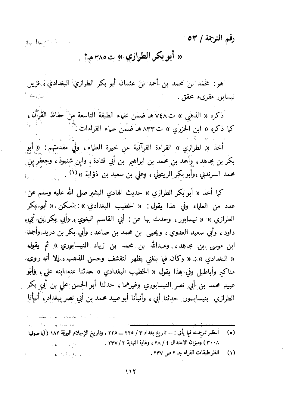 رقم الترجمة/ 53 «أبو بكر الطرازي» ت 385 هـ (¬1)
