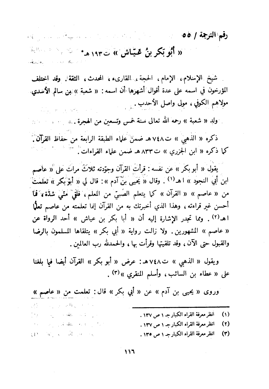 رقم الترجمة/ 55 «أبو بكر بن عيّاش» ت 193 هـ