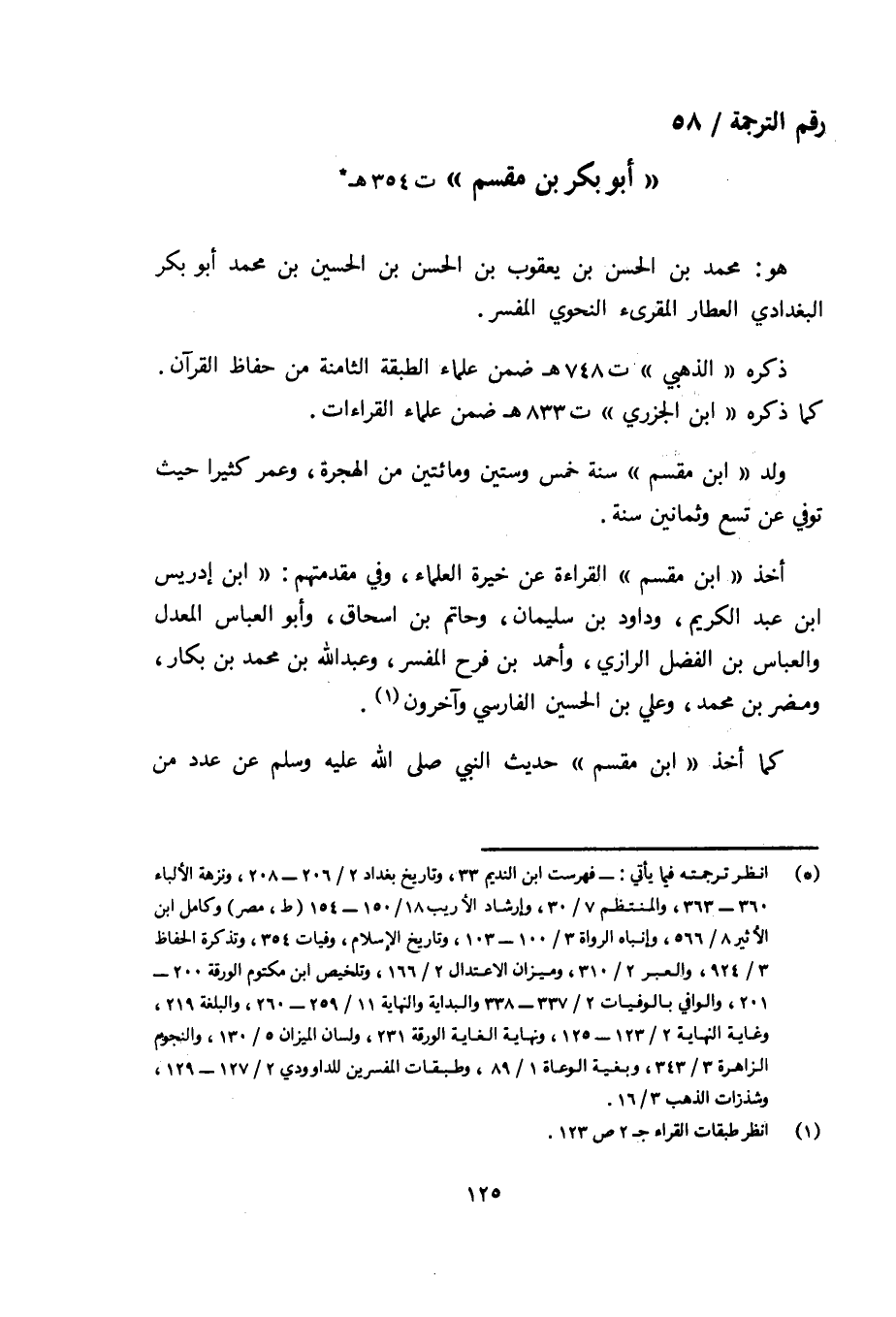 رقم الترجمة/ 58 «أبو بكر بن مقسم» ت 354 هـ (¬1)
