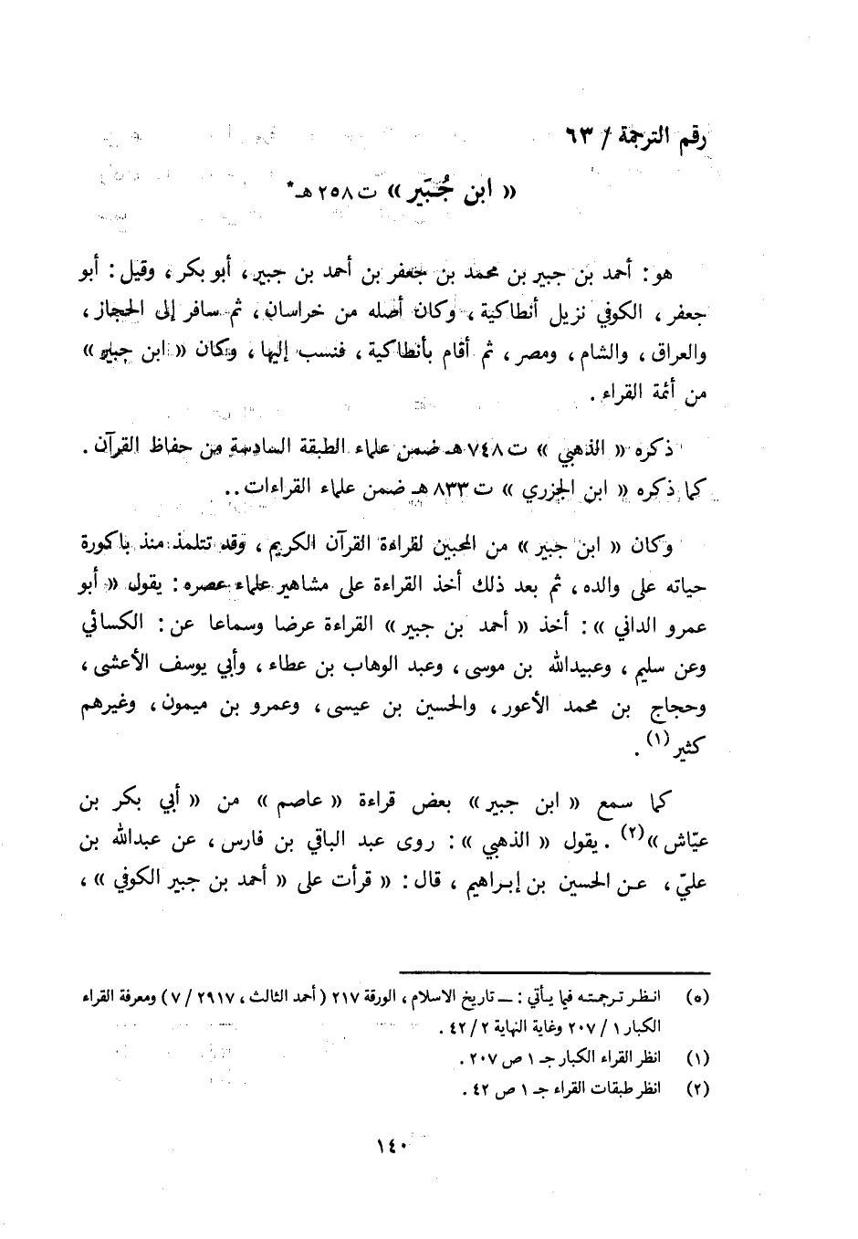 رقم الترجمة/ 63 «ابن جبير» ت 258 هـ (¬1)