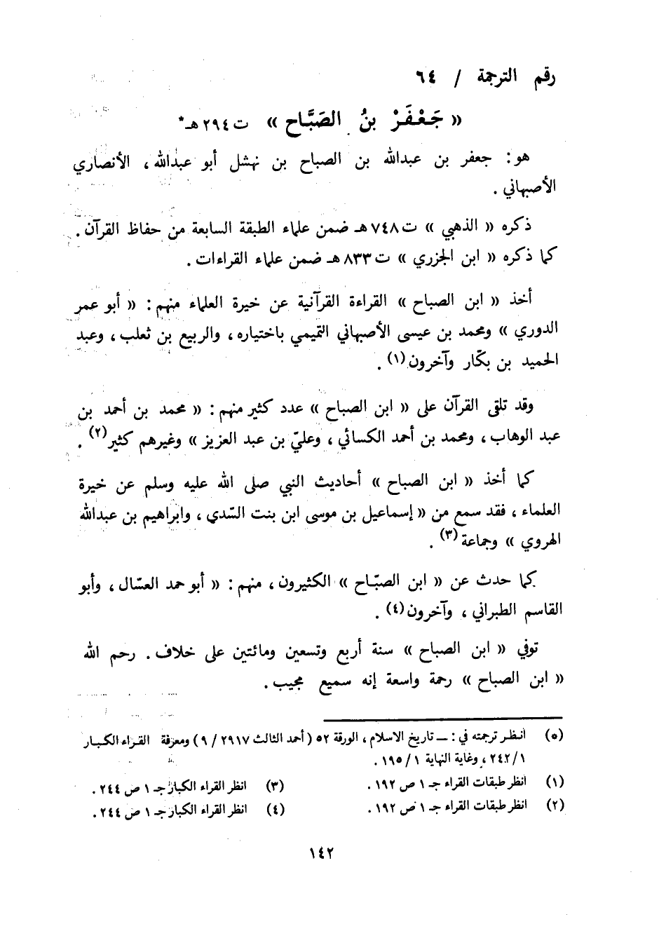 رقم الترجمة/ 64 «جعفر بن الصبّاح» ت 294 هـ (¬1)