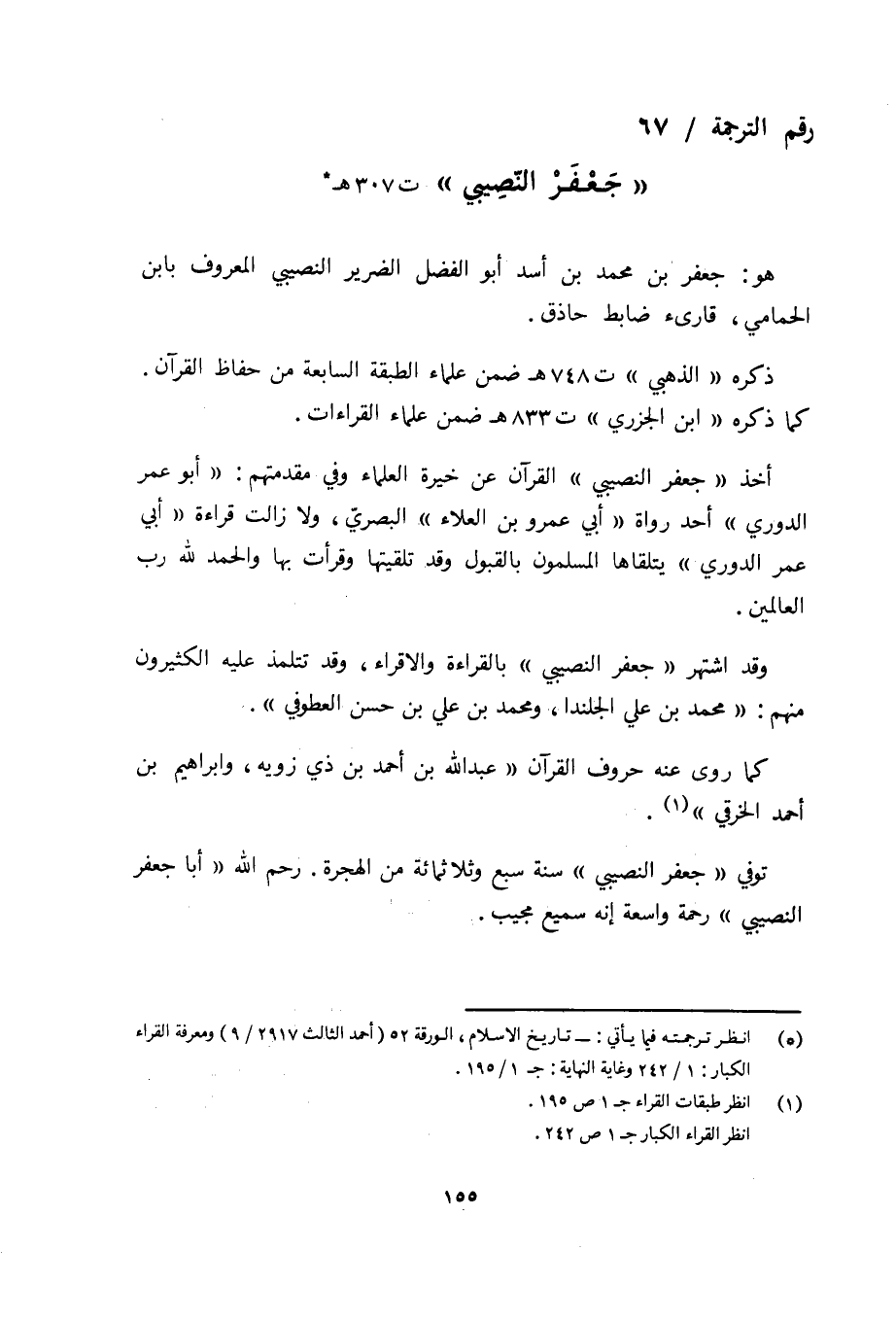 رقم الترجمة/ 67 «جعفر النّصيبي» ت 307 هـ (¬1)