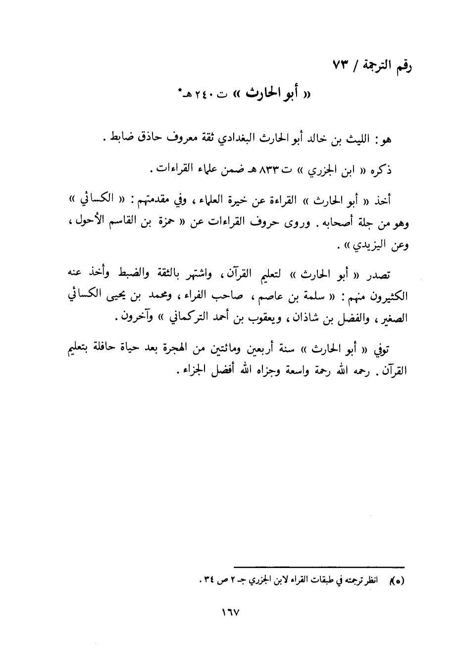 رقم الترجمة/ 73 «أبو الحارث» ت 240 هـ (¬1)