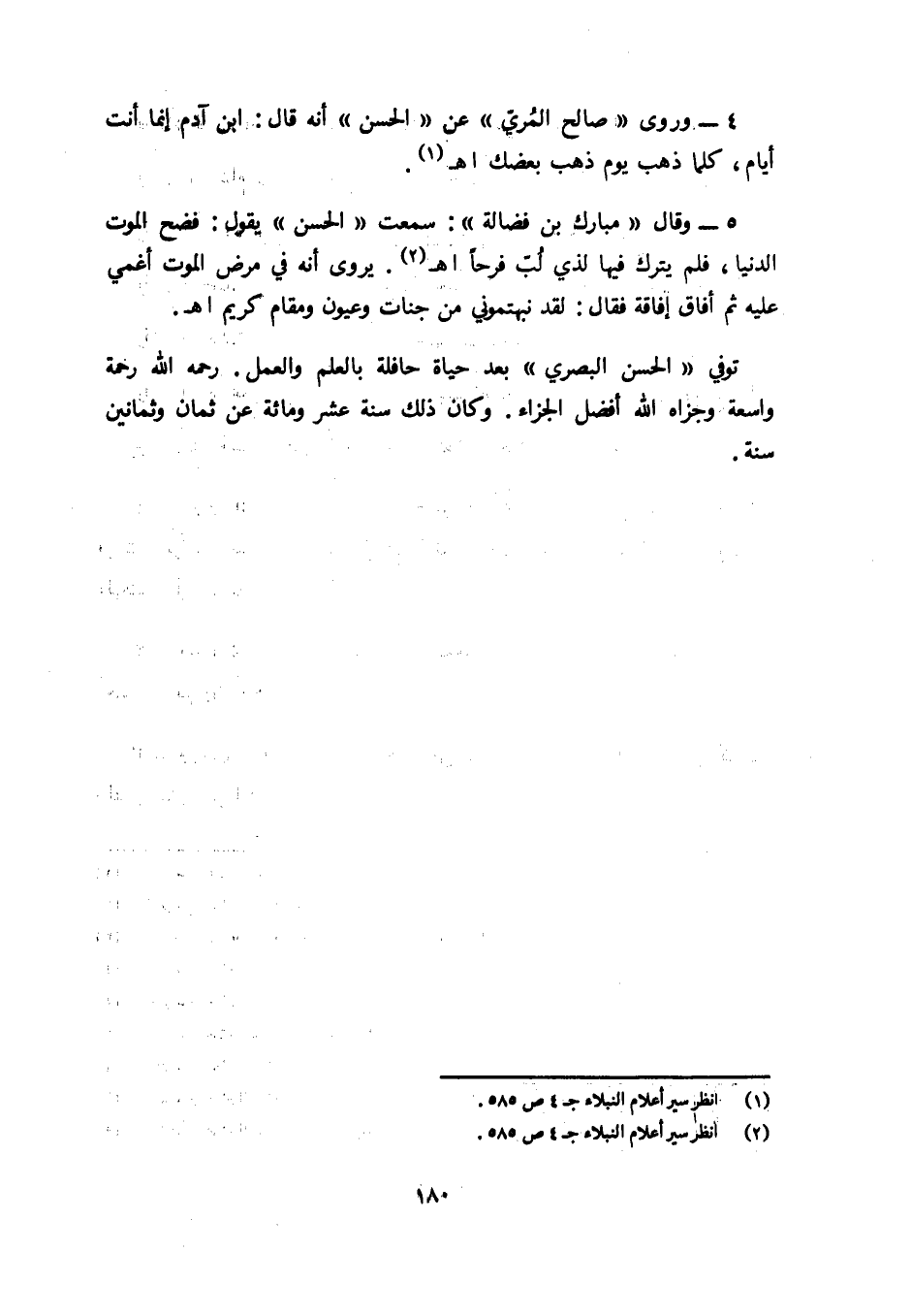4 - وروى «صالح المريّ» عن «الحسن» أنه قال: ابن آدم إنما أنت أيام، كلما ذهب يوم ذهب بعضك اهـ (¬1).