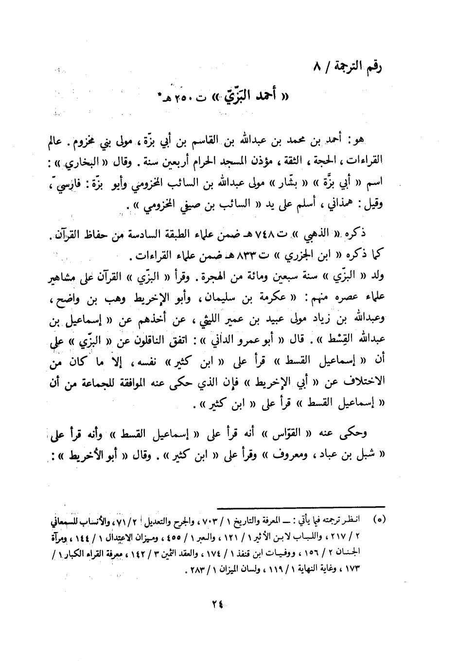 رقم الترجمة/ 8 «أحمد البزّيّ» ت 250 هـ (¬1)