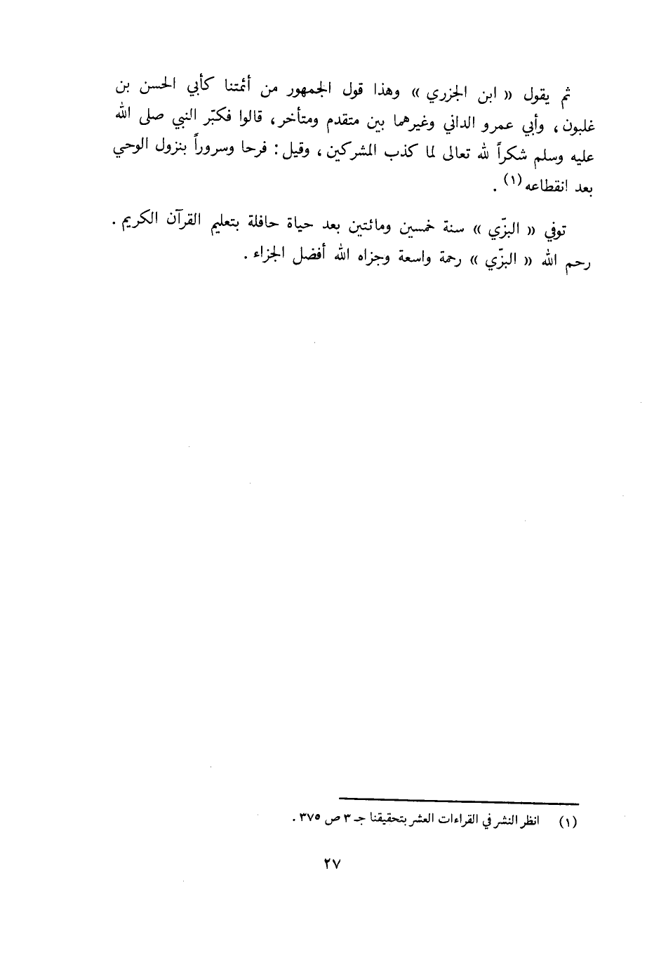 رحم الله «البزّي» رحمة واسعة وجزاه الله أفضل الجزاء.