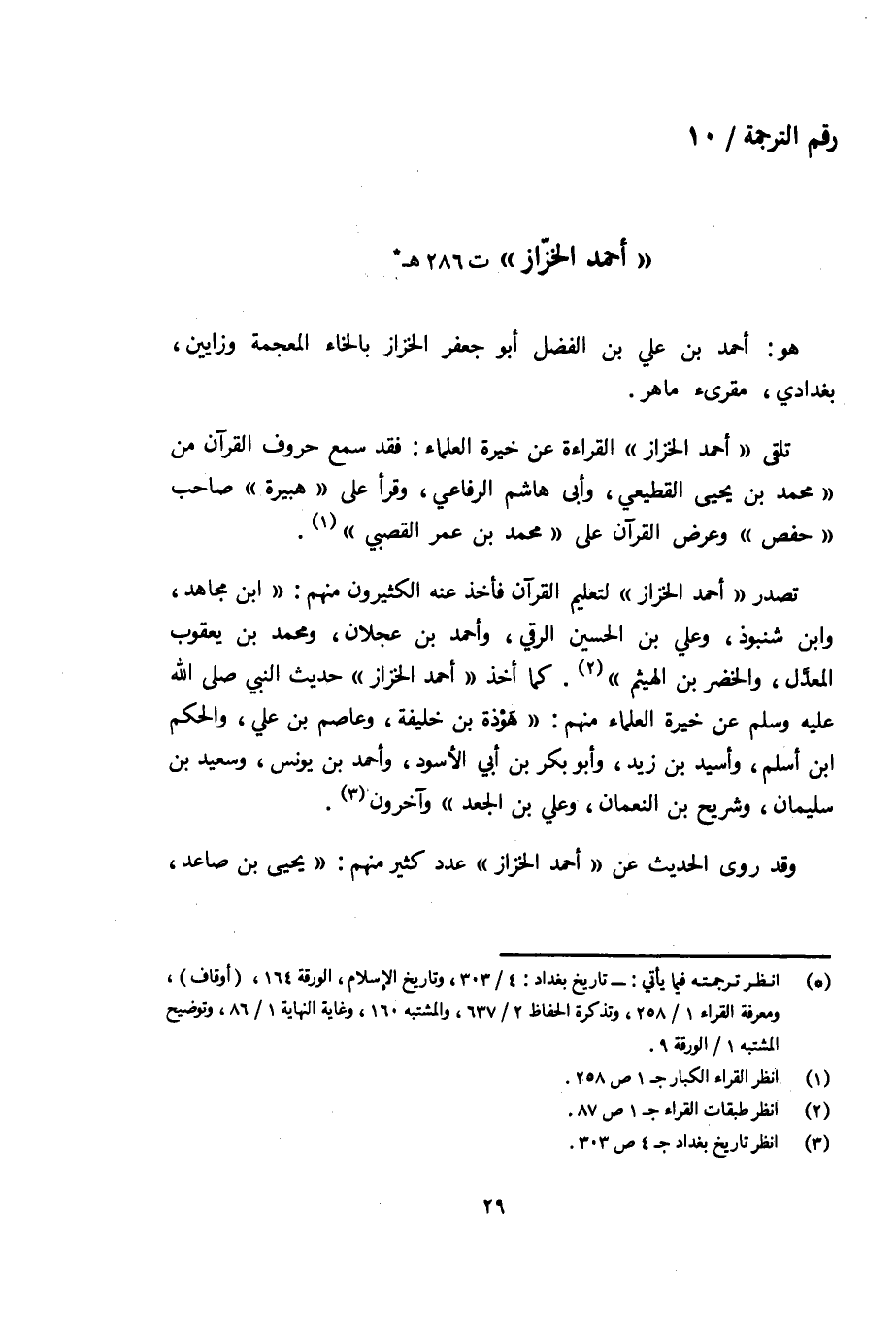 رقم الترجمة/ 10 «أحمد الخزّاز» ت 286 هـ (¬1)