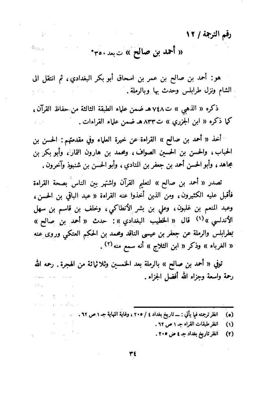 رقم الترجمة/ 12 «أحمد بن صالح» ت بعد 350 (¬1)