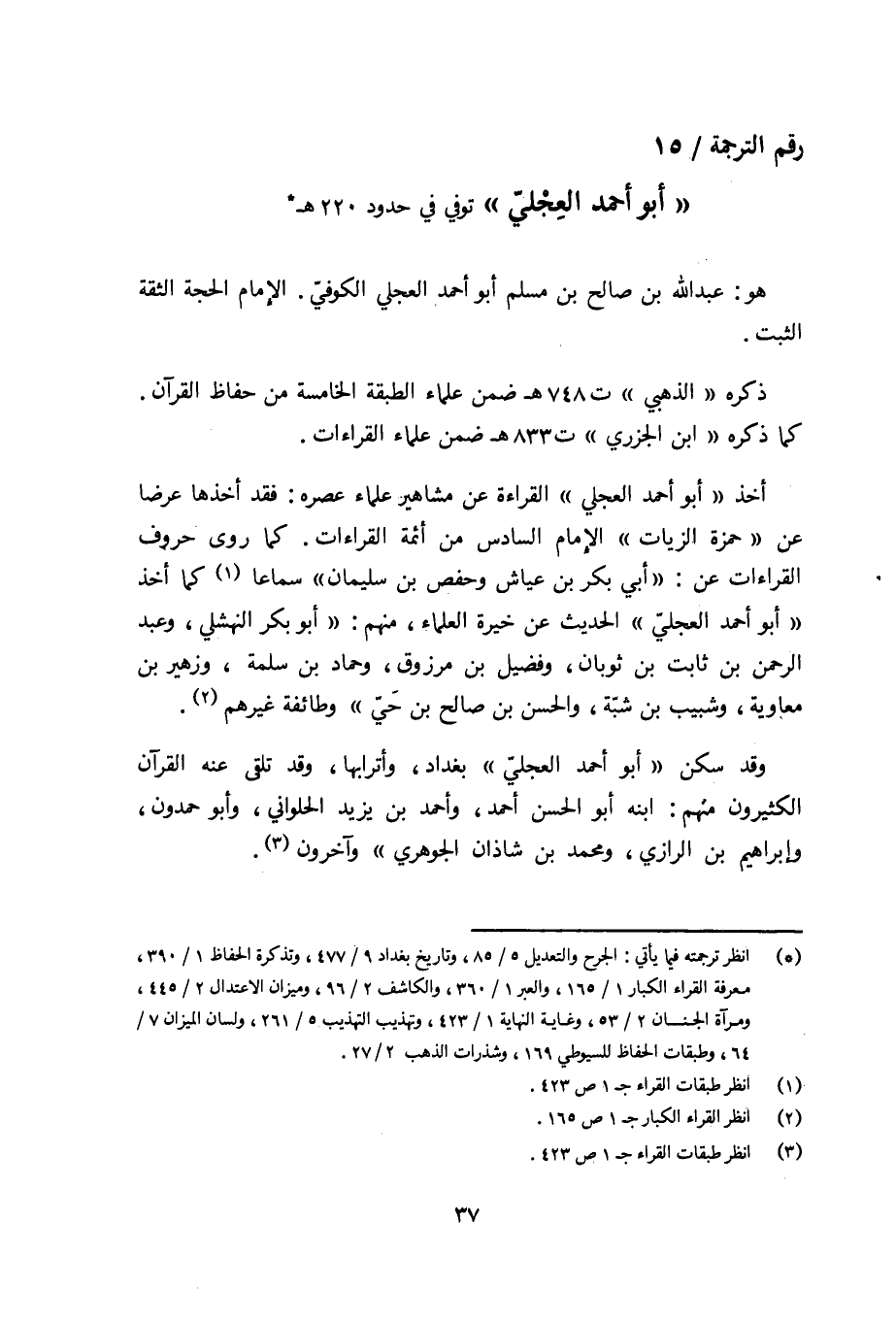 رقم الترجمة/ 15 «أبو أحمد العجليّ» توفي في حدود 220 هـ (¬1)