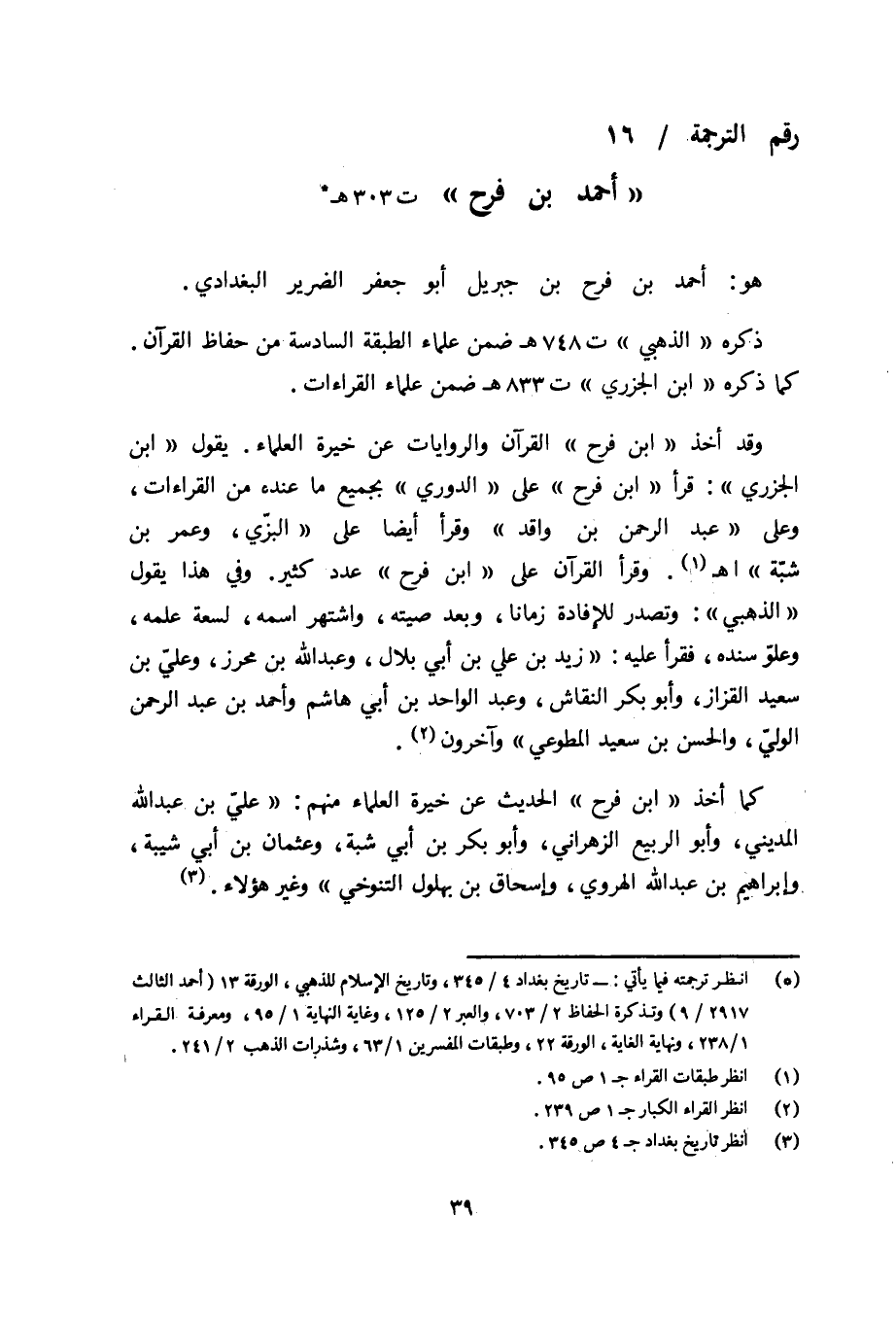 رقم الترجمة/ 16 «أحمد بن فرح» ت 303 هـ (¬1)