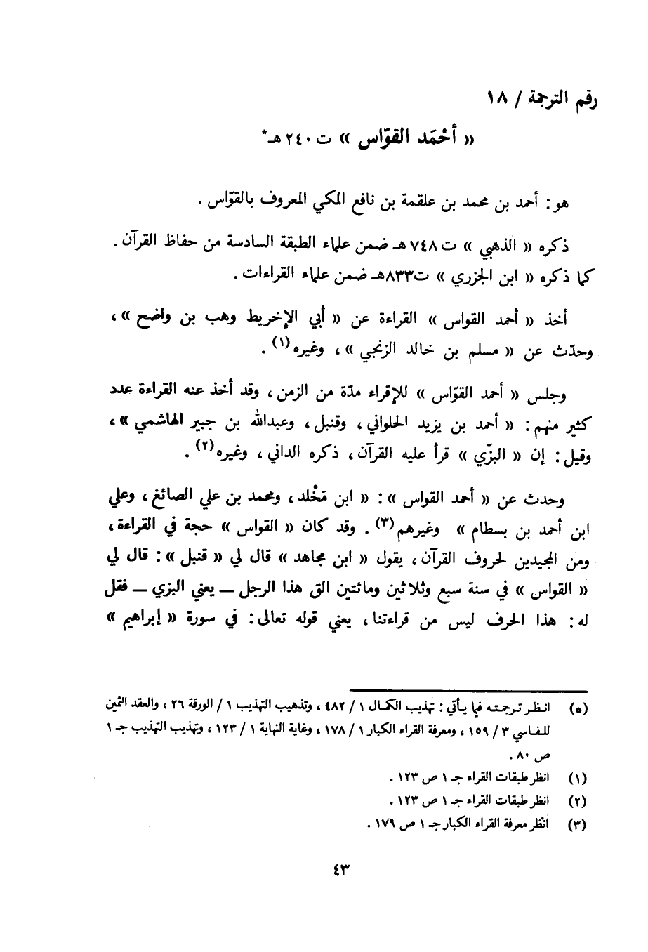 (¬3) انظر طبقات القراء ج 1 ص 123.