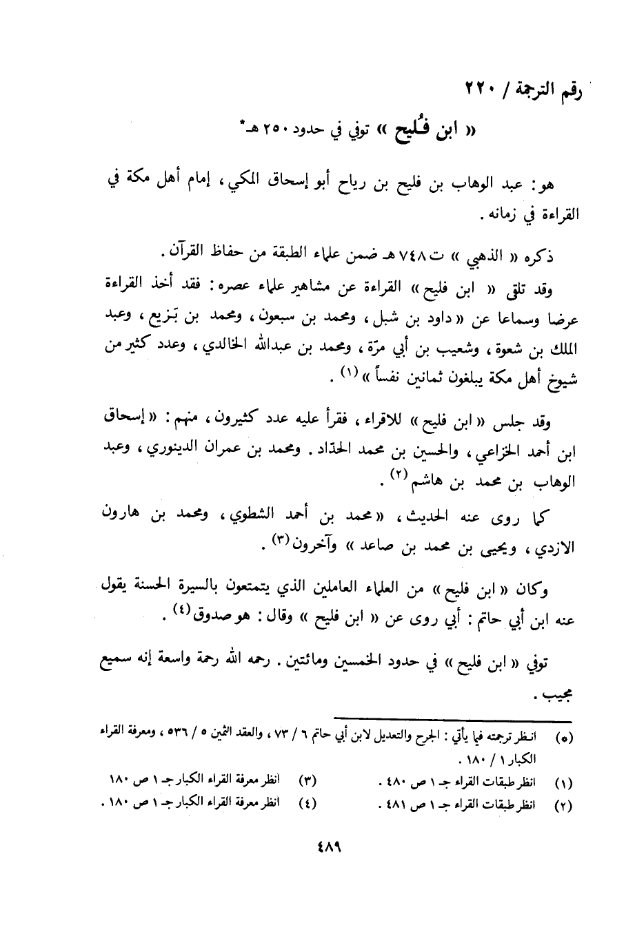 رقم الترجمة/ 220 «ابن فليح» توفي في حدود 250 هـ (¬1)