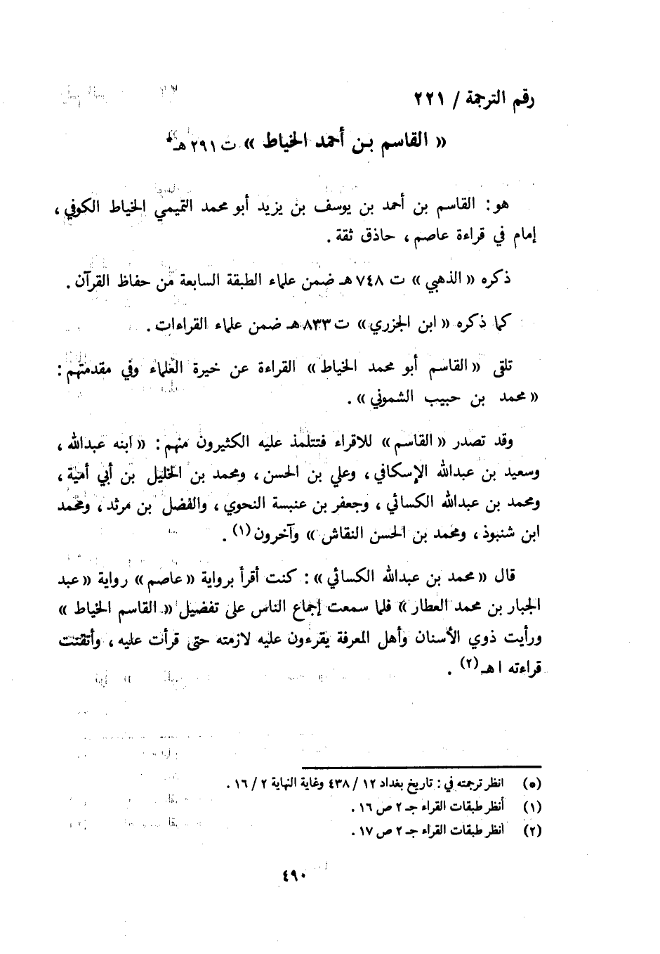 رقم الترجمة/ 221 «القاسم بن أحمد الخياط» ت 291 هـ (¬1)