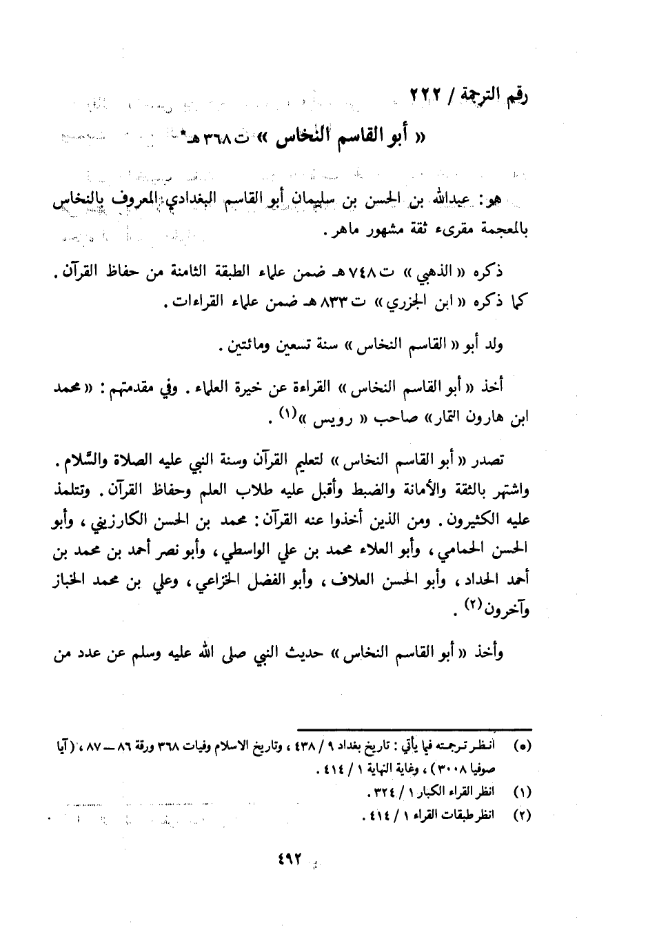 رقم الترجمة/ 222 «أبو القاسم النخاس» ت 368 هـ (¬1)