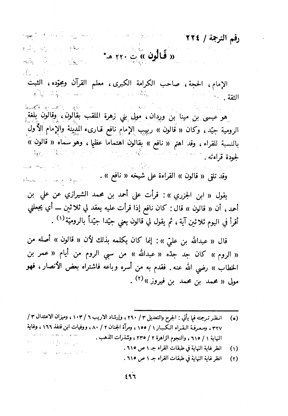 رقم الترجمة/ 224 «قالون» ت 220 هـ (¬1)