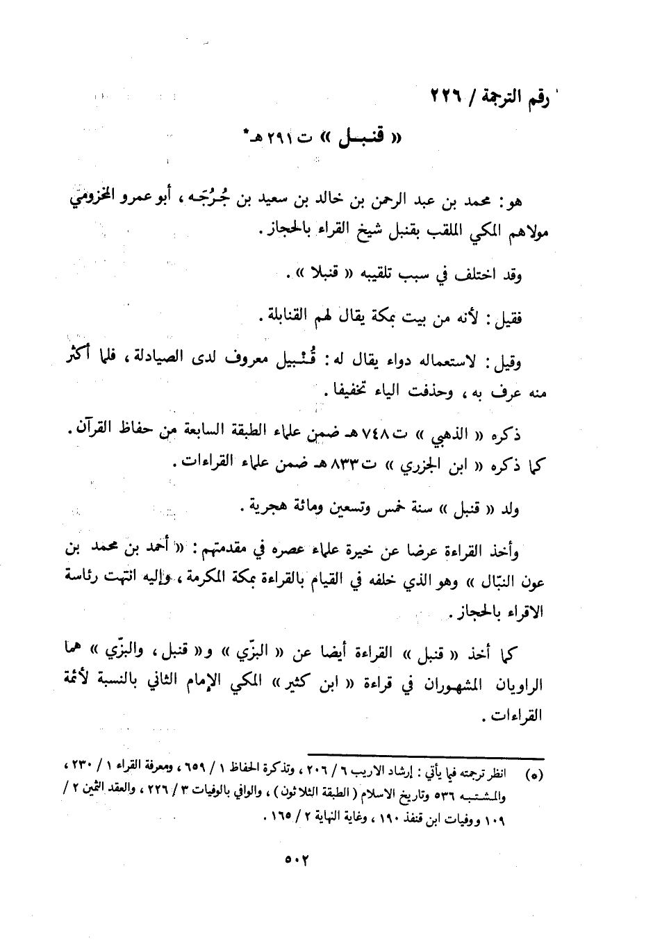رقم الترجمة/ 226 «قنبل» ت 291 هـ (¬1)