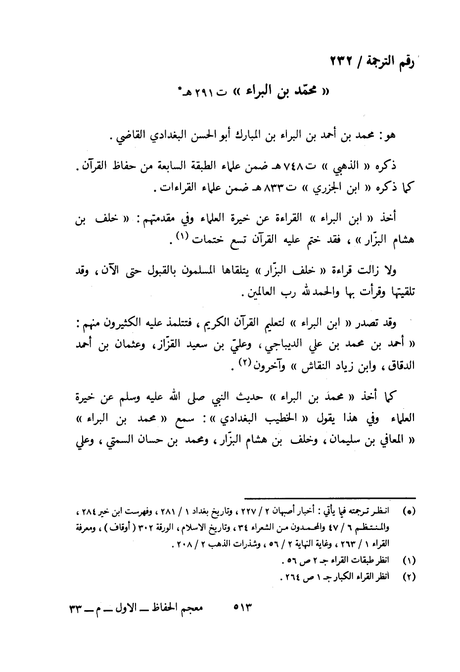 رقم الترجمة/ 232 «محمّد بن البراء» ت 291 هـ (¬1)