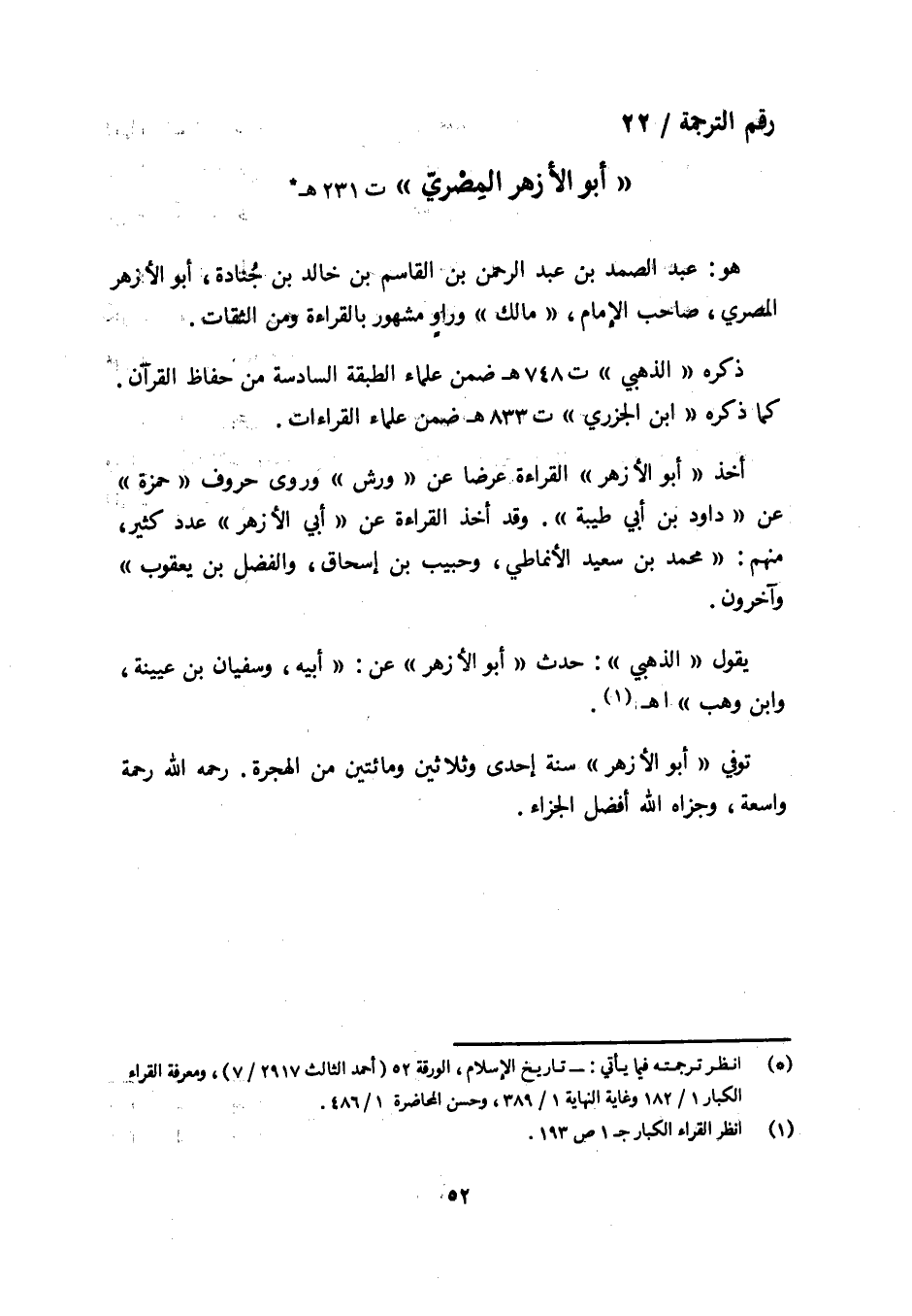 رقم الترجمة/ 22 «أبو الأزهر المصريّ» ت 231 هـ (¬1)