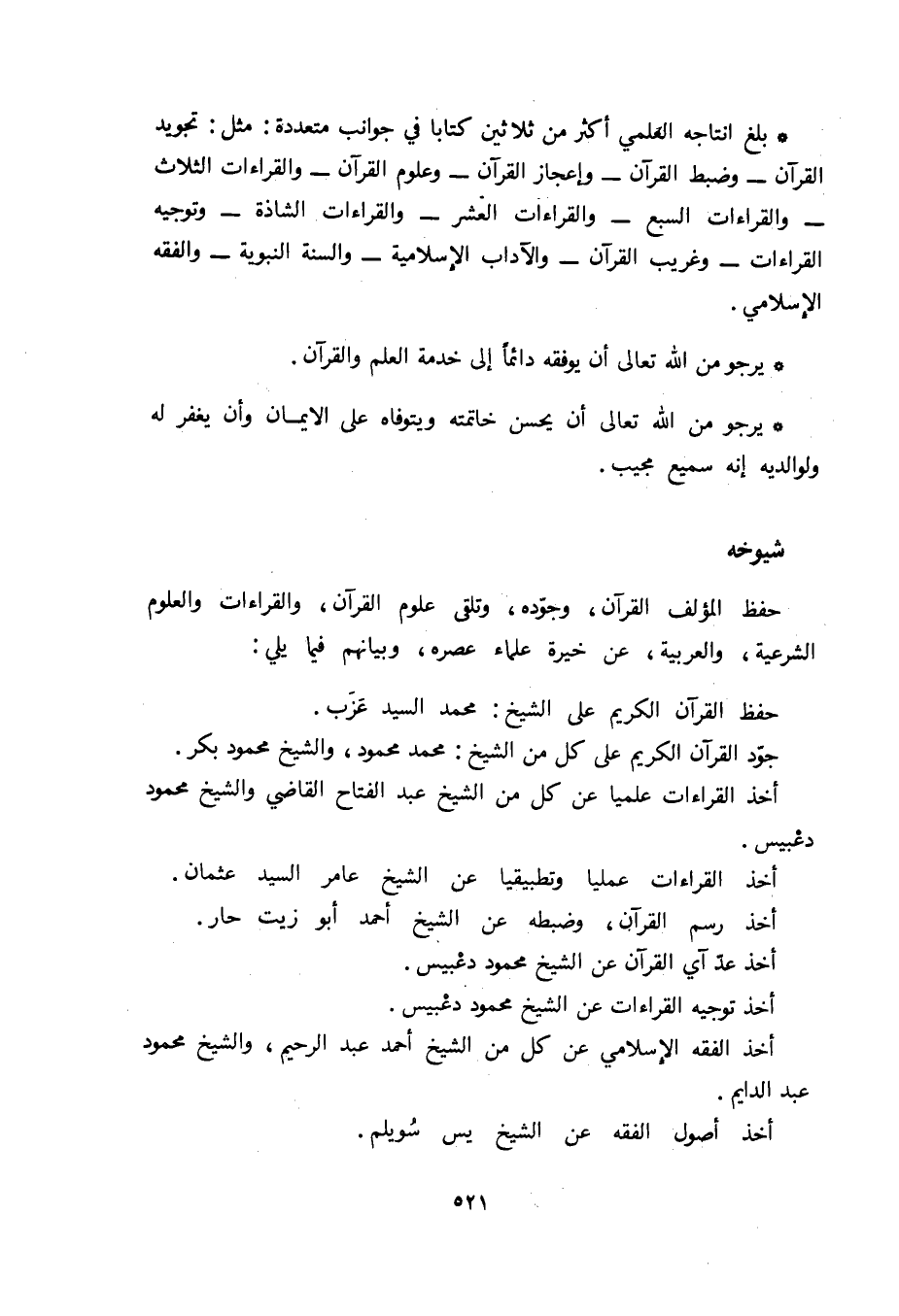 * يرجو من الله تعالى أن يوفقه دائما إلى خدمة العلم والقرآن.