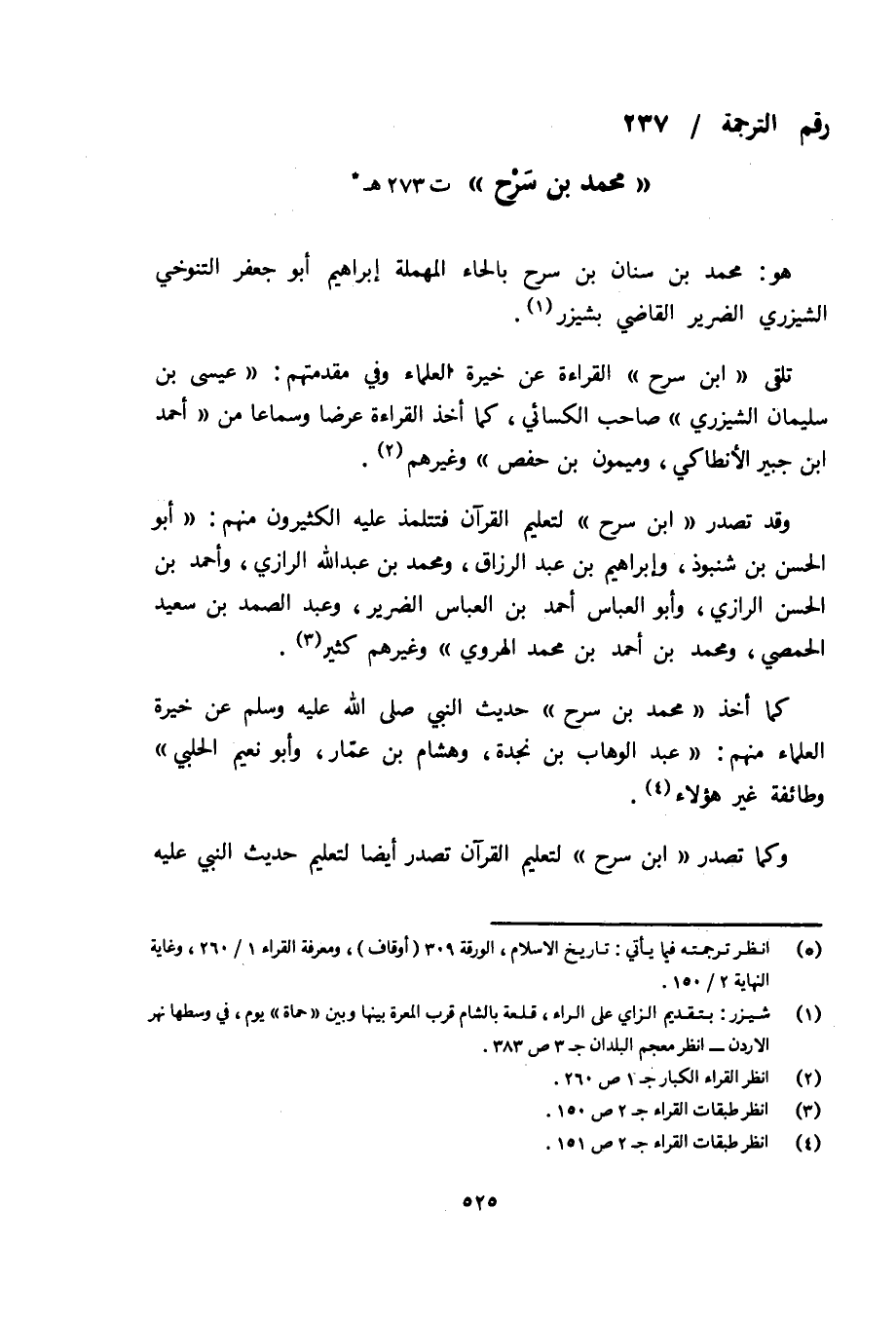 رقم الترجمة/ 237 «محمد بن سرح» ت 273 هـ (¬1)