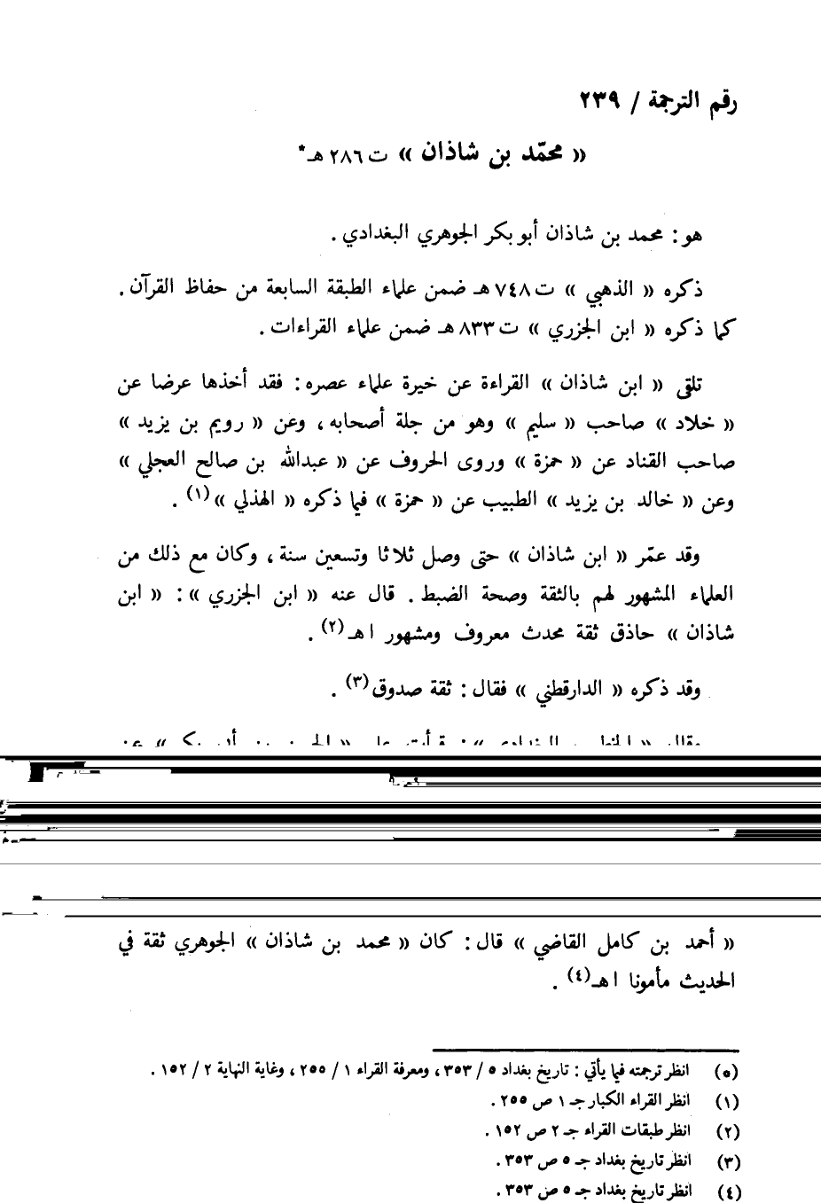 رقم الترجمة/ 239 «محمّد بن شاذان» ت 286 هـ (¬1)