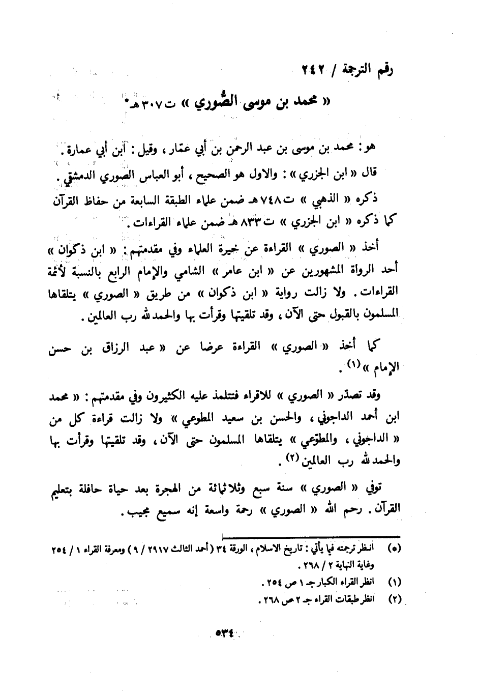 رقم الترجمة/ 242 «محمد بن موسى الصّوري» ت 307 هـ (¬1)
