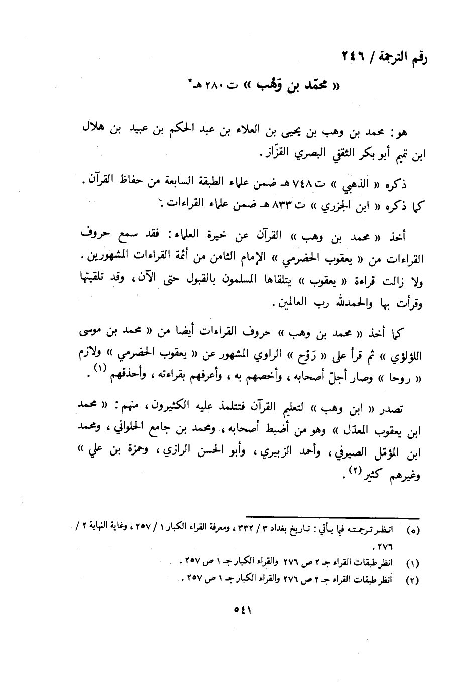 (¬2) انظر طبقات القراء ج 2 ص 276 والقراء الكبار ج 1 ص 257.