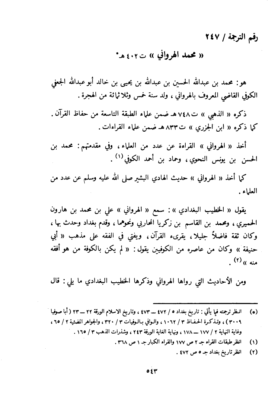 رقم الترجمة/ 247 «محمد الهرواني» ت 402 هـ (¬1)