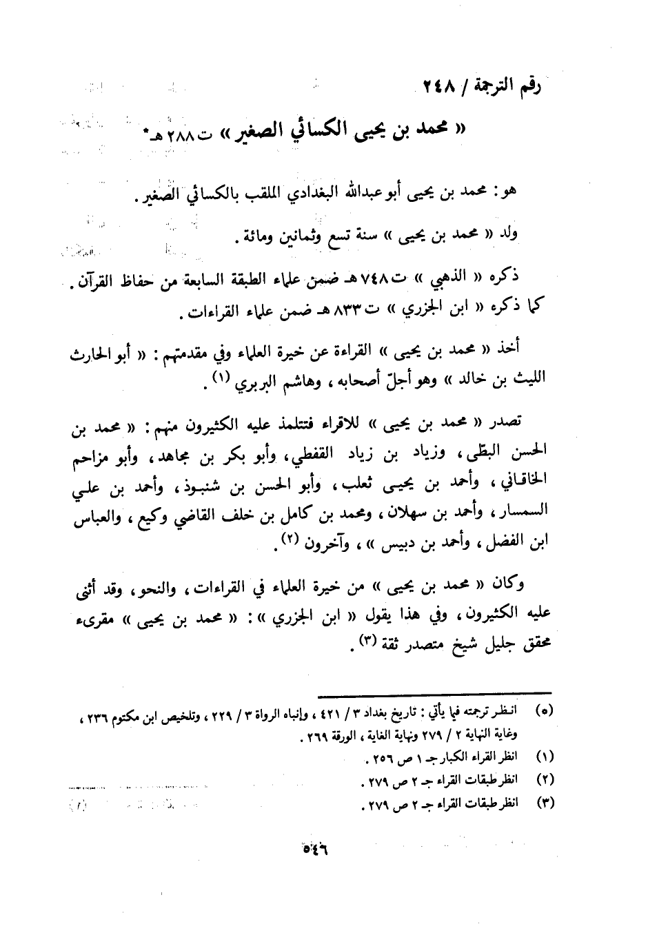 رقم الترجمة/ 248 «محمد بن يحيى الكسائي الصغير» ت 288 هـ (¬1)