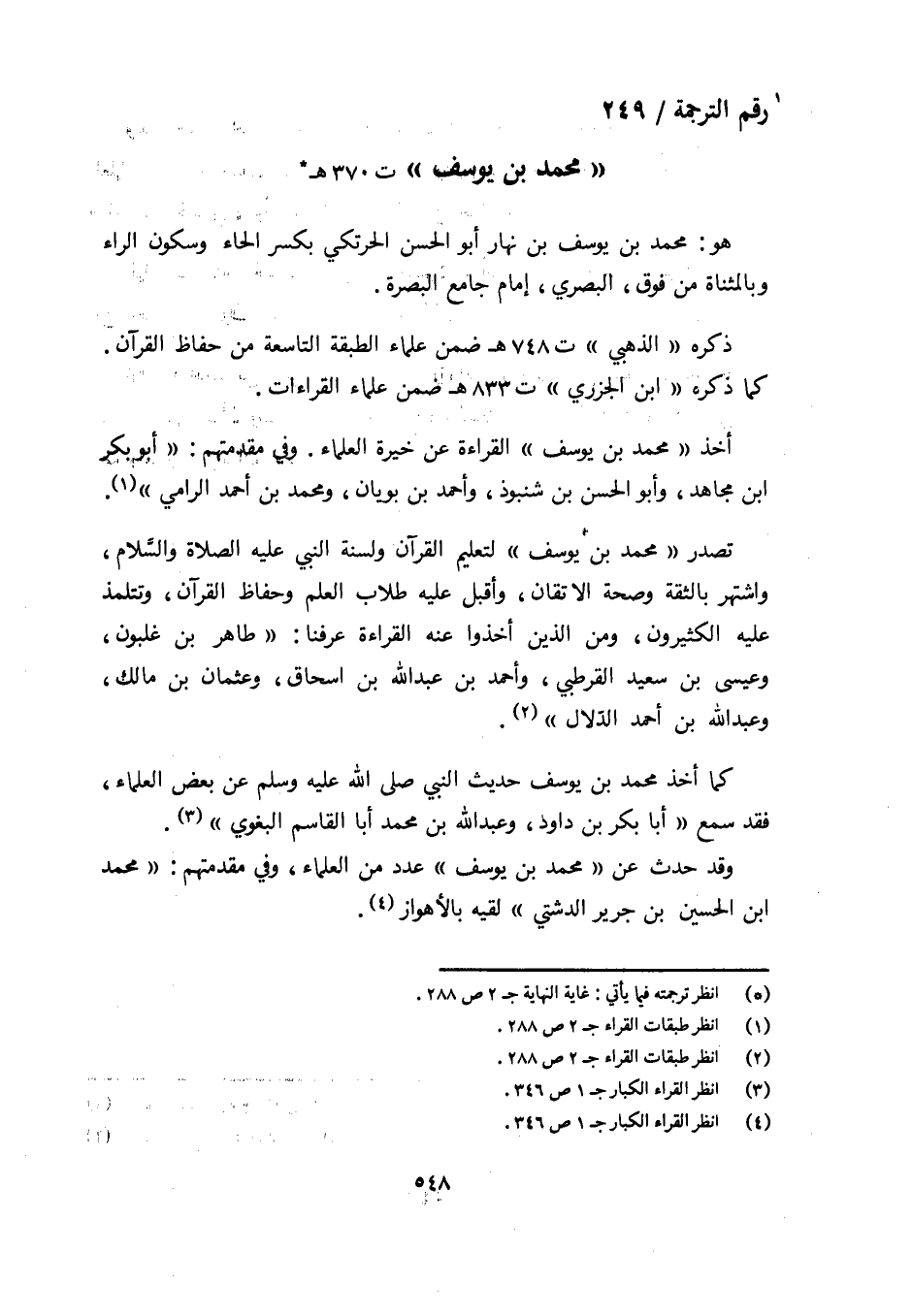 رقم الترجمة/ 249 «محمد بن يوسف» ت 370 هـ (¬1)