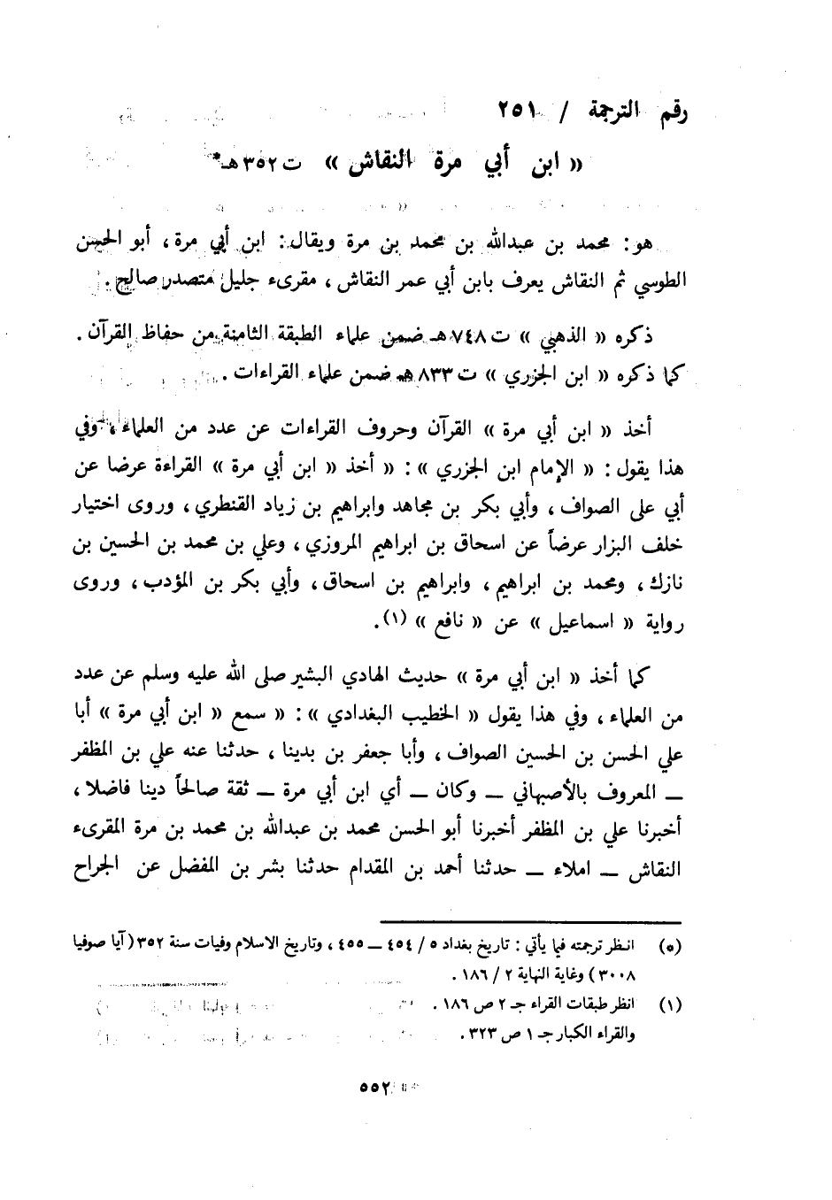 رقم الترجمة/ 251 «ابن أبي مرة النقاش» ت 352 هـ (¬1)