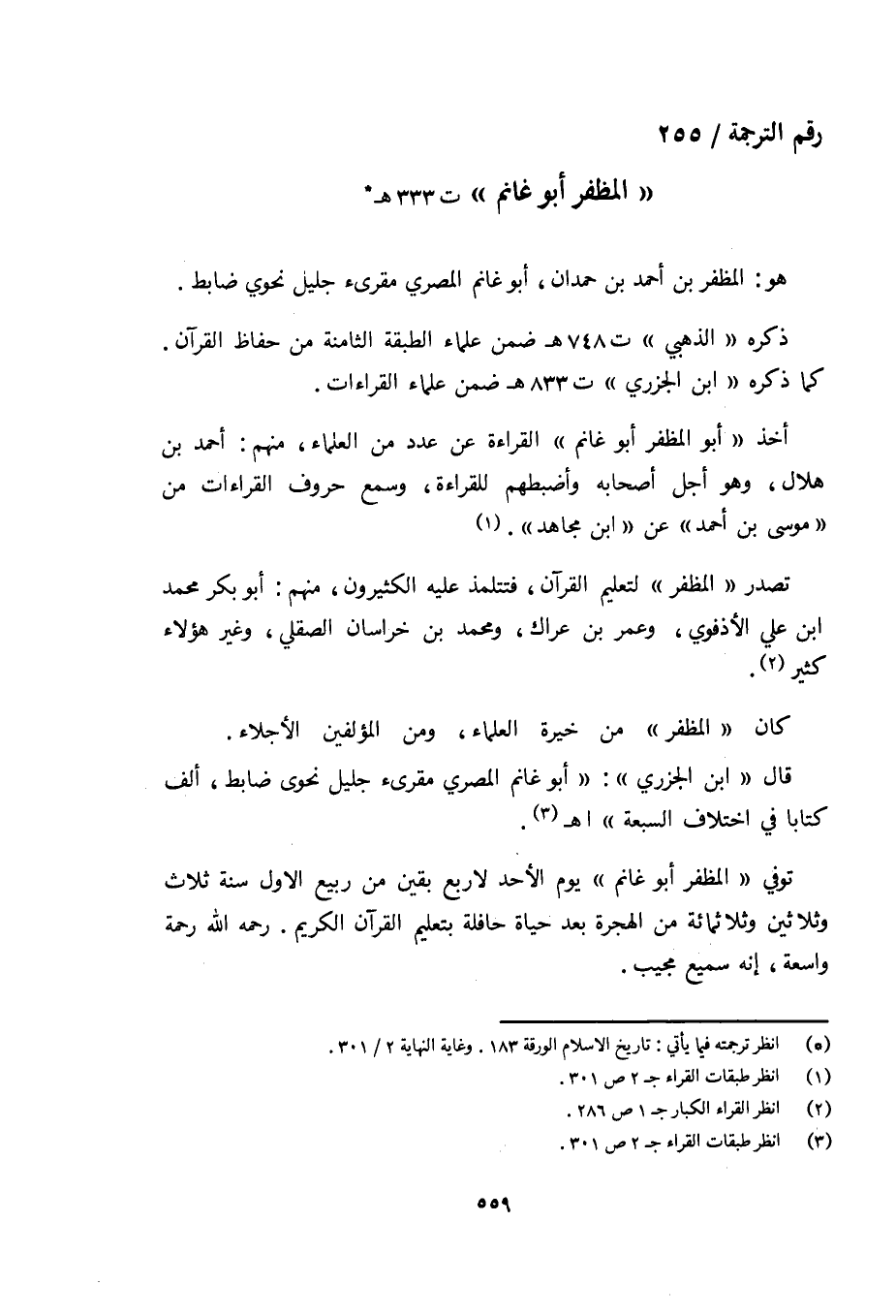 رقم الترجمة/ 255 «المظفر أبو غانم» ت 333 هـ (¬1)