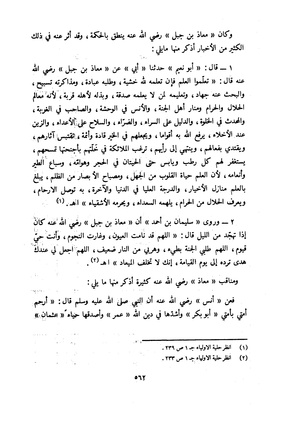 (¬2) انظر حلية الاولياء ج 1 ص 233.