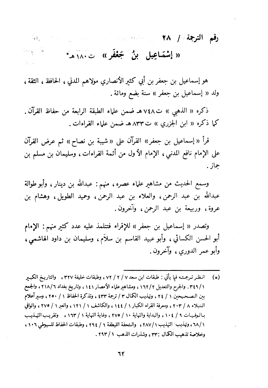 رقم الترجمة/ 28 «إسماعيل بن جعفر» ت 180 هـ (¬1)
