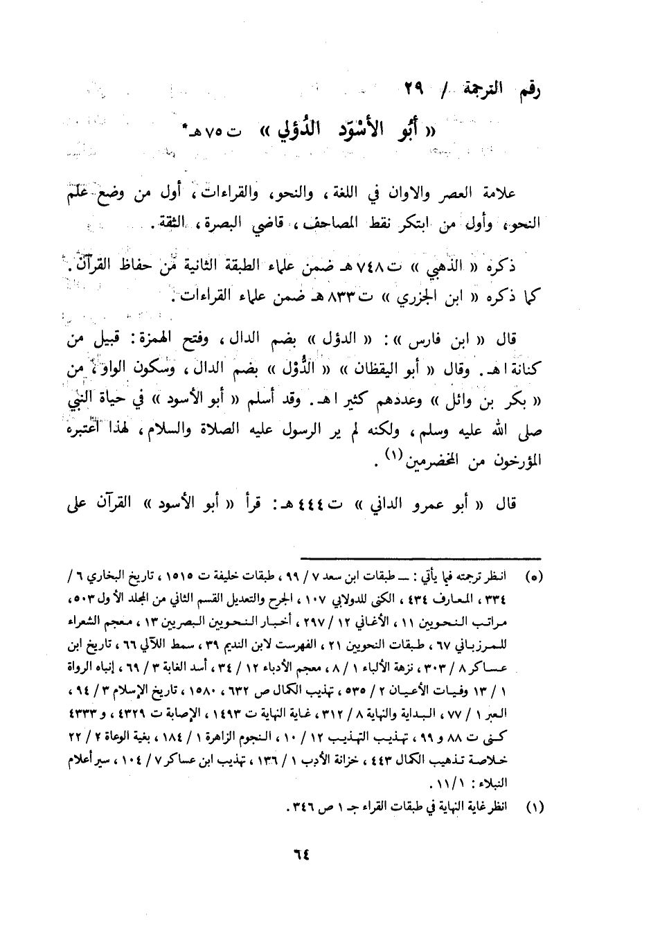 رقم الترجمة/ 29 «أبو الأسود الدؤلي» ت 75 هـ (¬1)