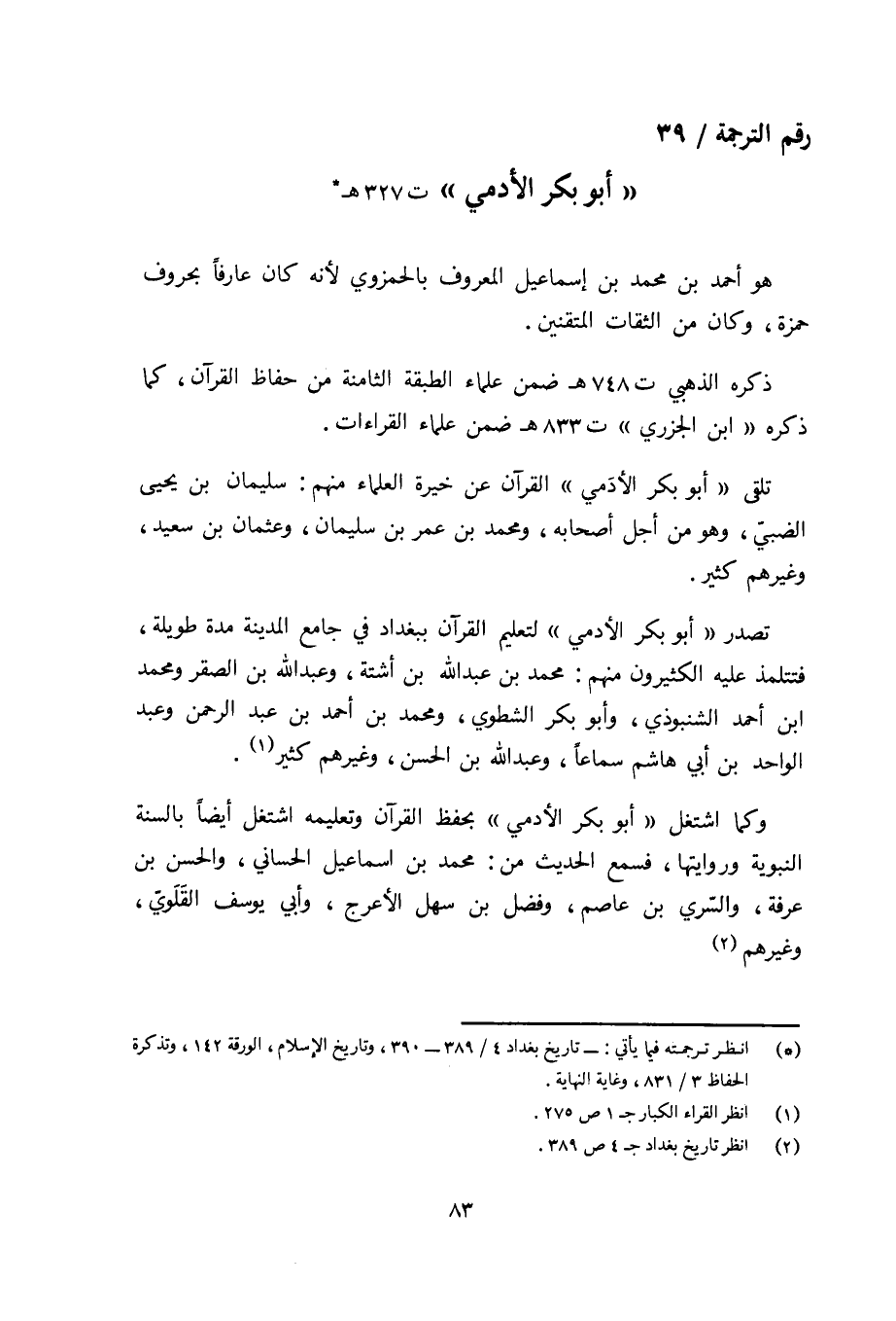 رقم الترجمة/ 39 «أبو بكر الأدمي» ت 327 هـ (¬1)