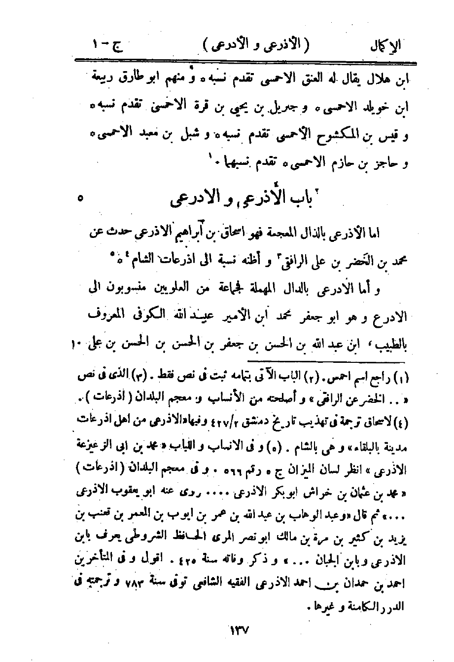 4 وفي الأنساب واللباب "محمد بن أبي الزعيزعة الأدرعي" انظر اللسان الميزان ج5 رقم 566. وفي معجم البلدان "اذرعات" "محمد بن عثمان بن خراش أبو بكر الأذرعي.... روى عنه أبو يعقوب الأذرعي ... " ثم قال: "وعبد الوهاب بن عبد الله بن عمر بن أيوب بن المعمر بن قعنب بن يزيد بن كثير بن مرة بن مالك أبو نصر المري الحافظ الشروطي يعرف بابن الأذرعي وبابن الجبان ... " وذكر وفاته سنة 425. أقول وفي المتأخرين أحمد بن حمدان بن أحمد الأذرعي الفقيه الشافعي توفي سنة 783، وترجمته في الدرر والكامنة وغيرها.